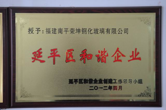 2012年4月,延平区和谐企业创建工作领导小组授予我司'延平区和谐企业'的称号.